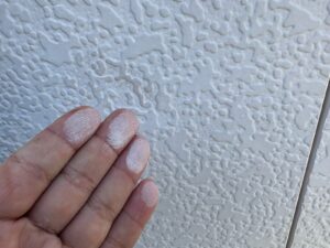 ✅チョーキングや塗膜の劣化外壁を触ってみて、 白い粉が手につくチョーキング現象は