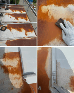 塗膜が劣化し、雨や湿気が直接金属に触れるようになると、 サビが進行しやすくなり、 放置すると穴あきや雨漏りの原因になることもあります。 今回は、 サビが目立ってきたトタン屋根の補修工事をご紹介します💡